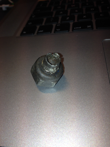 A good few minutes, and a fair bit of cussing later, we have a bolt cut off..